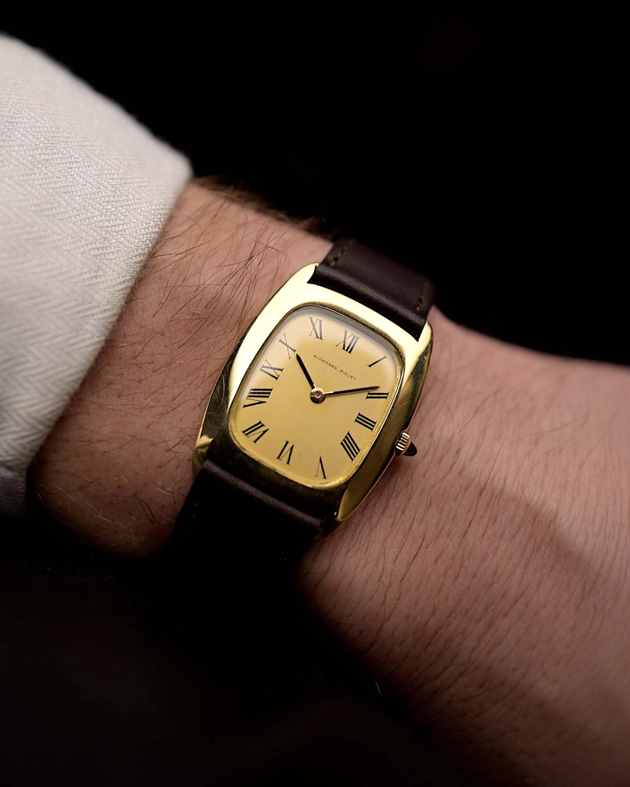 Here we have a beautifully finished 18k yellow gold Audemars Piguet dress watch in a oval tonneau design from the 1970s.