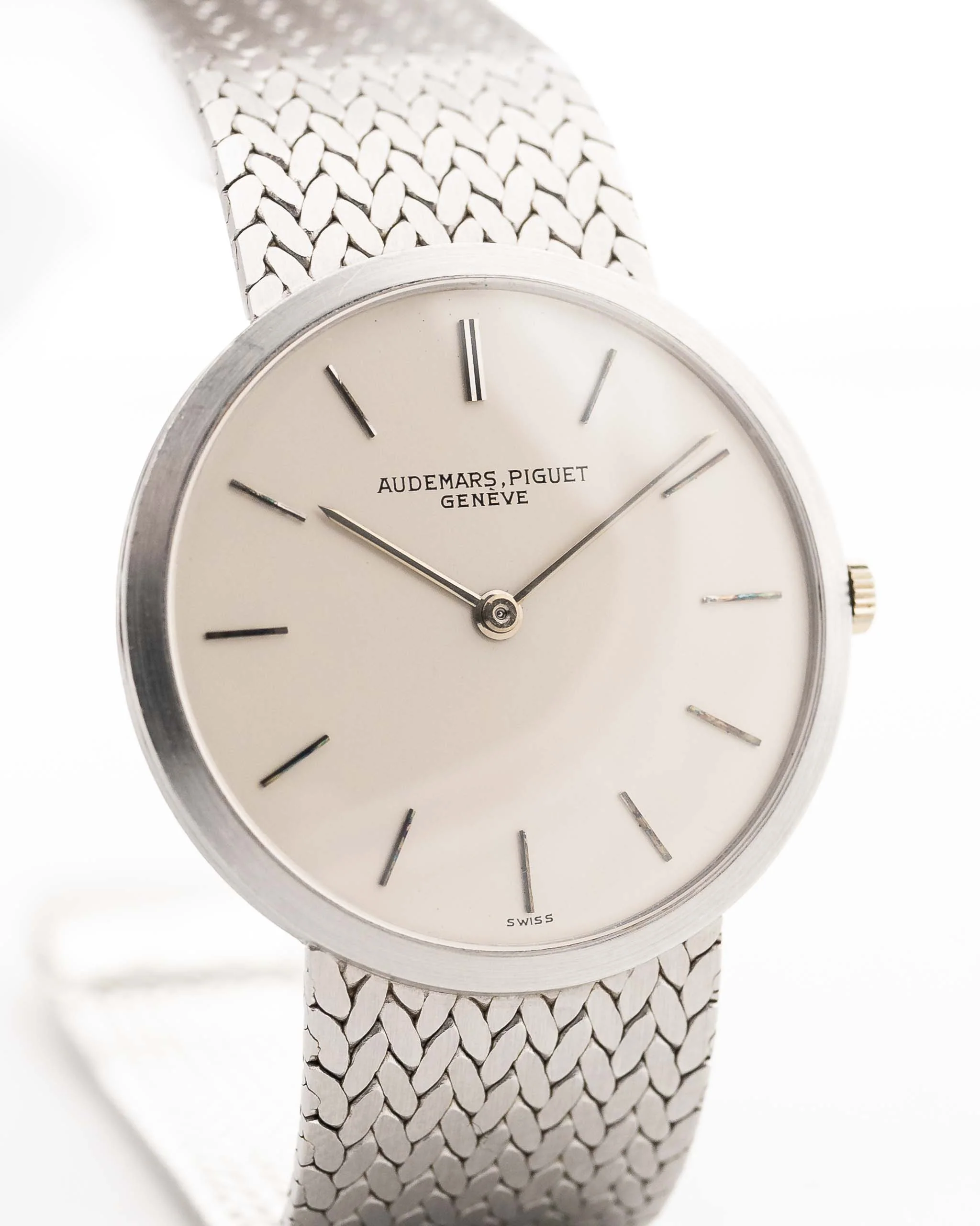 original Audemars Piguet 18k white gold bracelet is fitting up to 20 cm wrist size (adjustable by around 0.5 cm at the clasp) / 1.3 mm thick