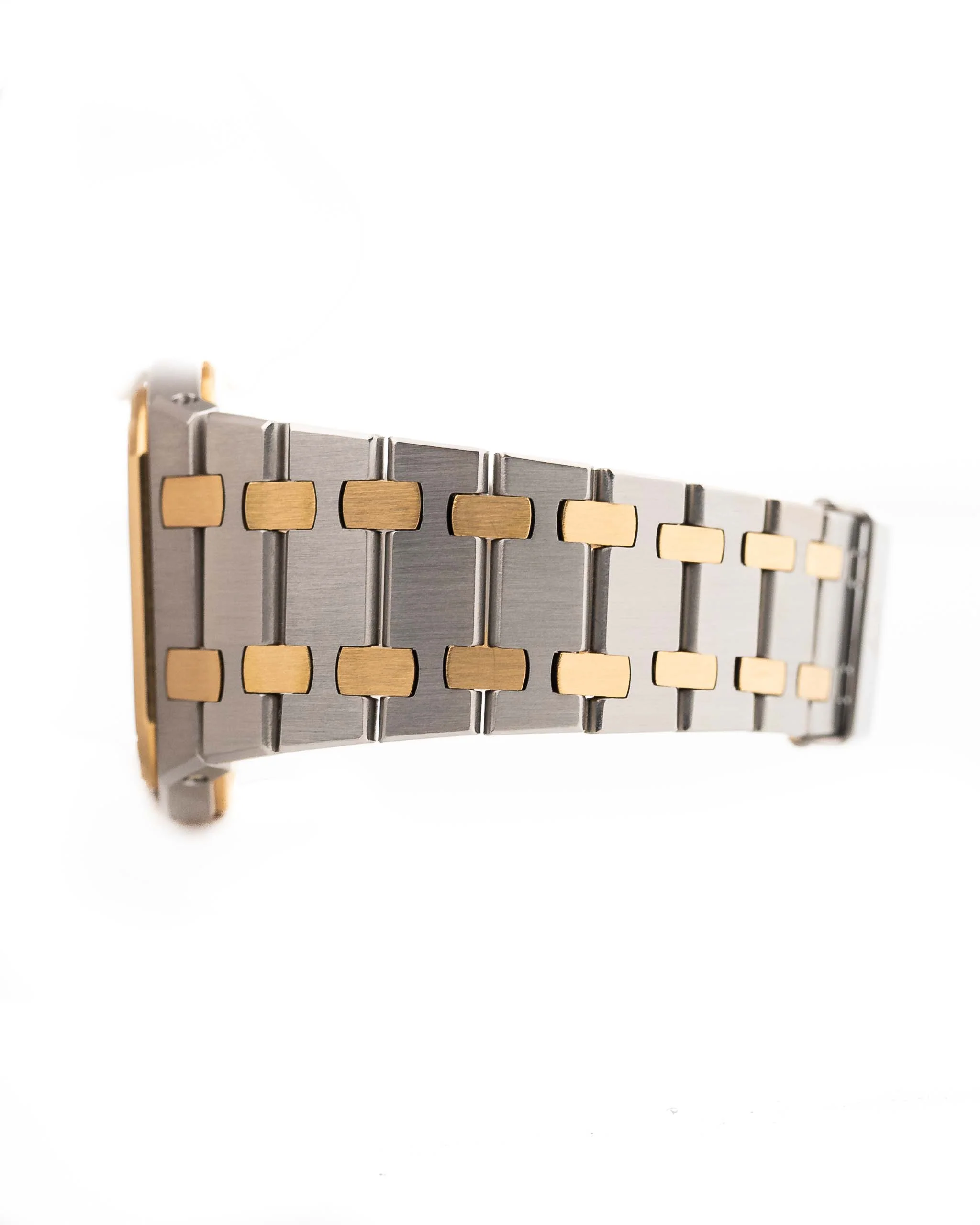 the original Audemars Piguet 18k yellow gold/stainless steel "Royal Oak" bracelet is fitting up to 17 cm wrist size and comes with to additional links to extend up to 18.5 cm / 2 mm thick