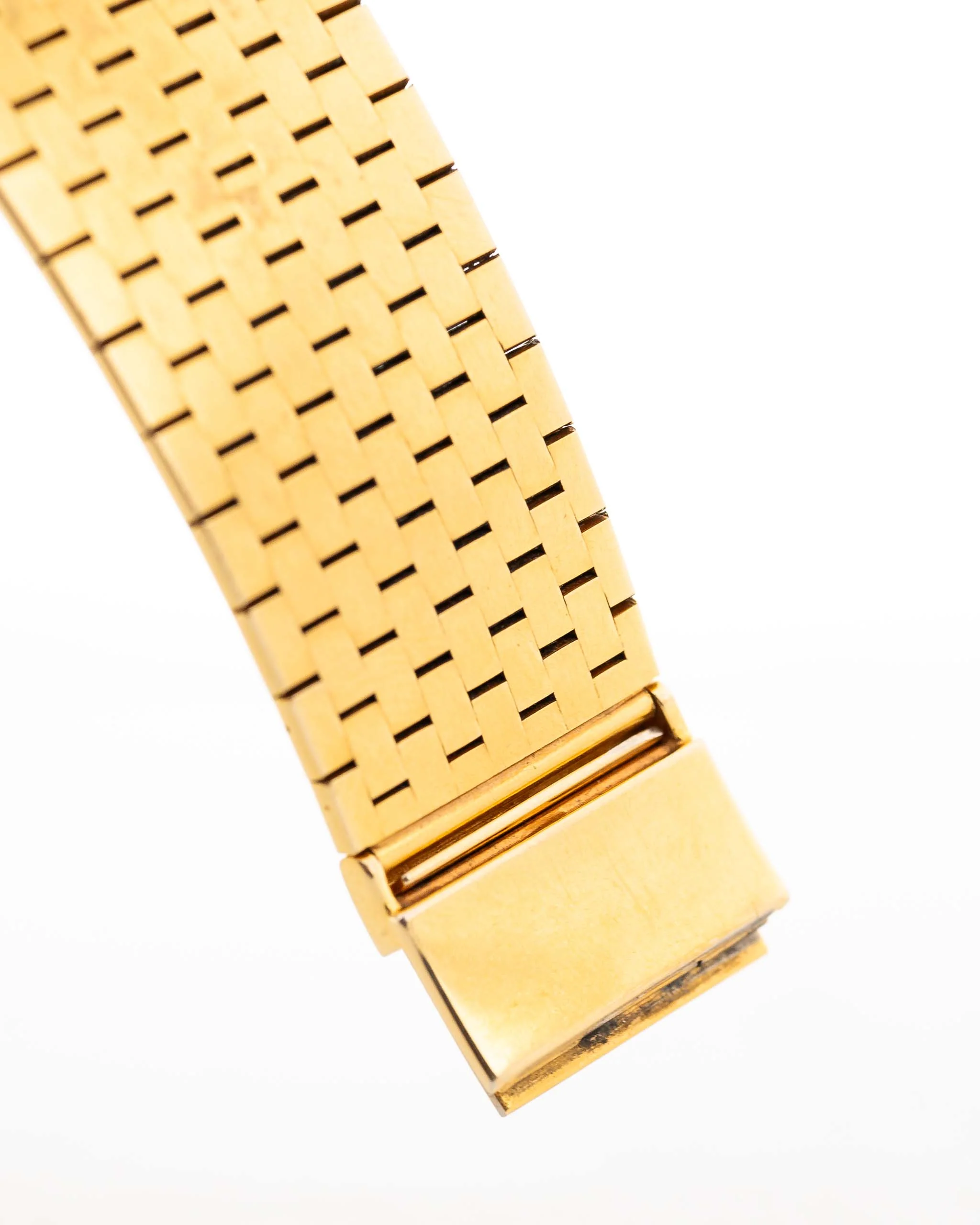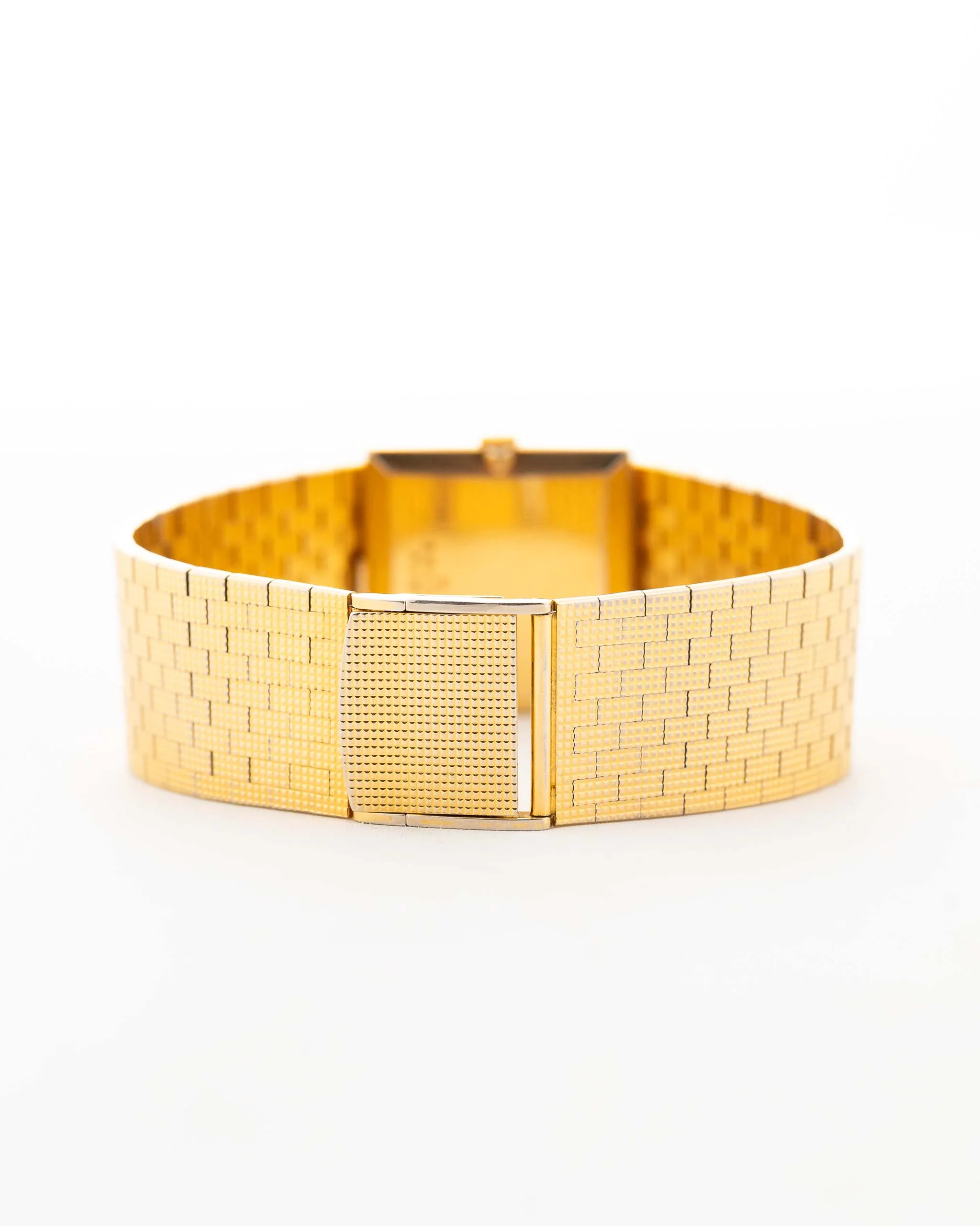 The 18k yellow gold case measuring 27 mm in diameter is in sharp condition and refined with a very unique 18k yellow gold bracelet. The icing on the cake is the blue Lapislazuli stone dial in flawless condition. Alpha hands and a decent Chopard logo keep the appearance understated and classic.
