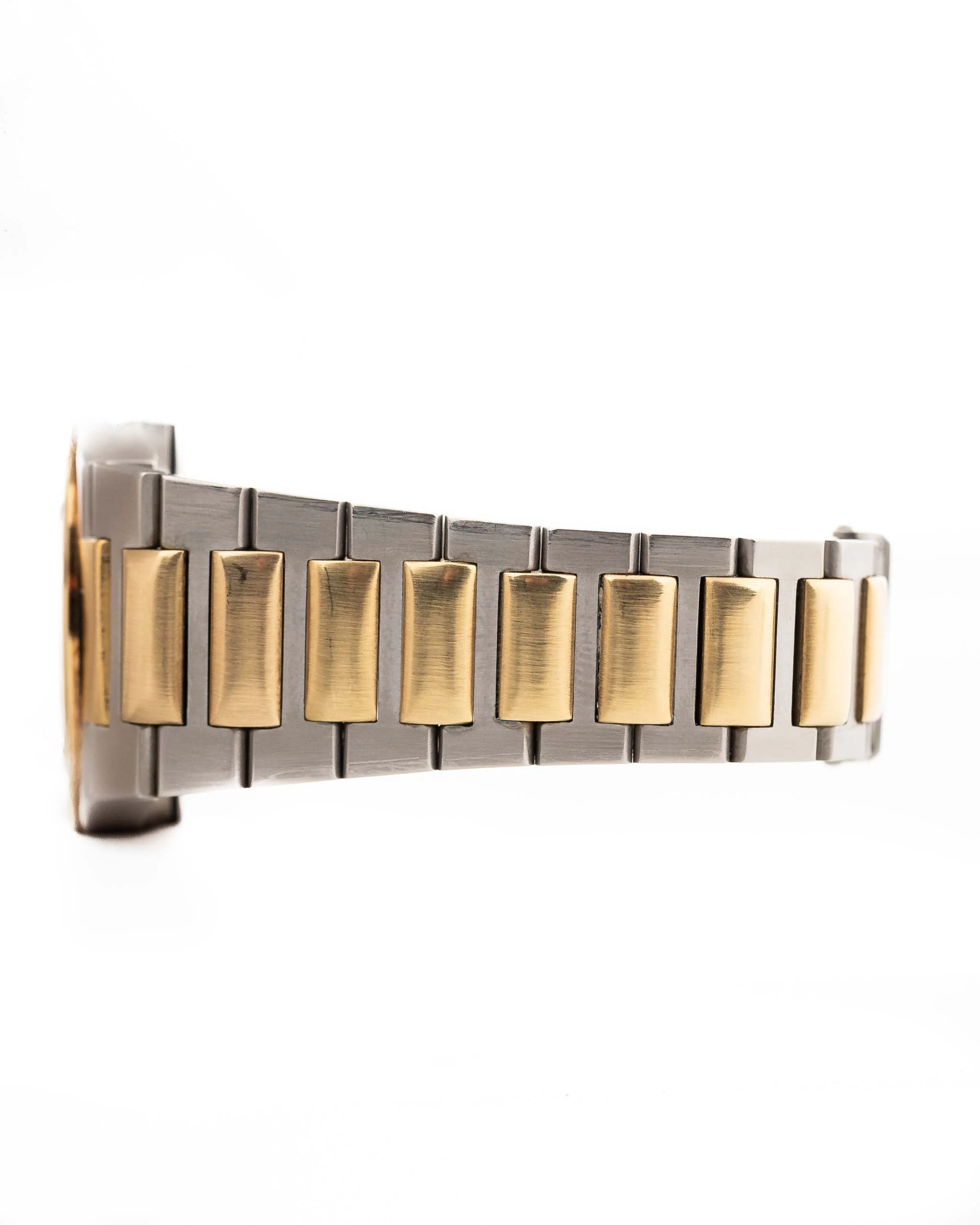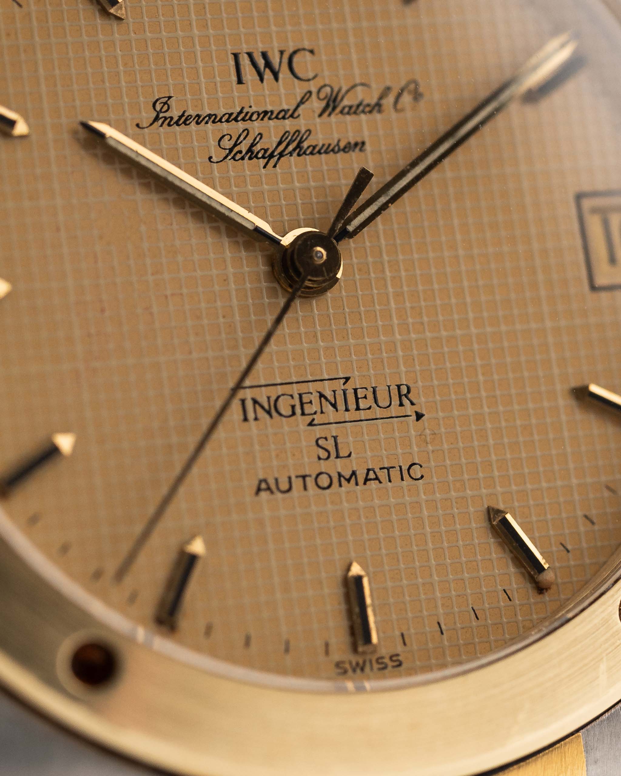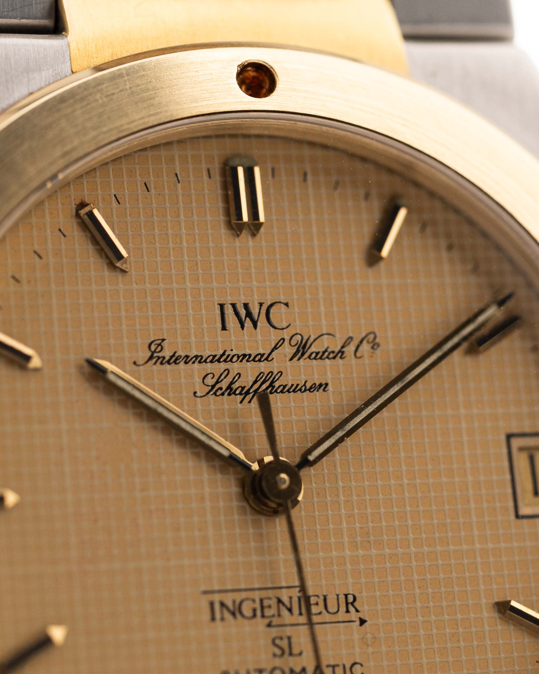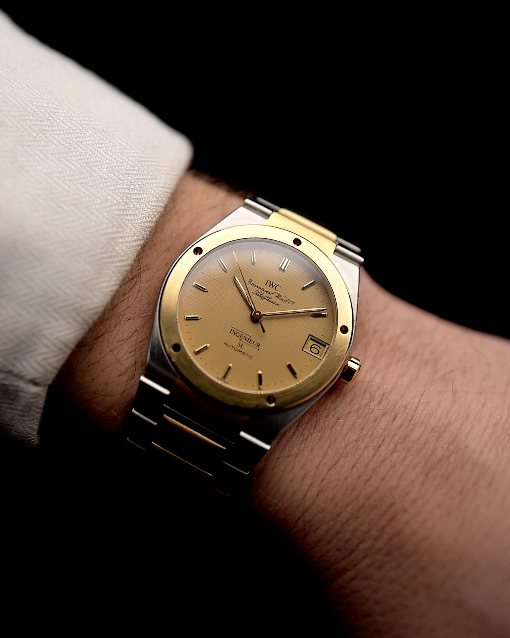 The 3rd generation Ingenieur SL has a lot going on. Design uniformity in the integrated bracelet and tonneau case, attractive details like the drilled portholes on 18k yellow gold bezel and gold hands and indices. It only was in production between 1985 and 1989 and produced only a few hundred times and there for is not seen everyday.