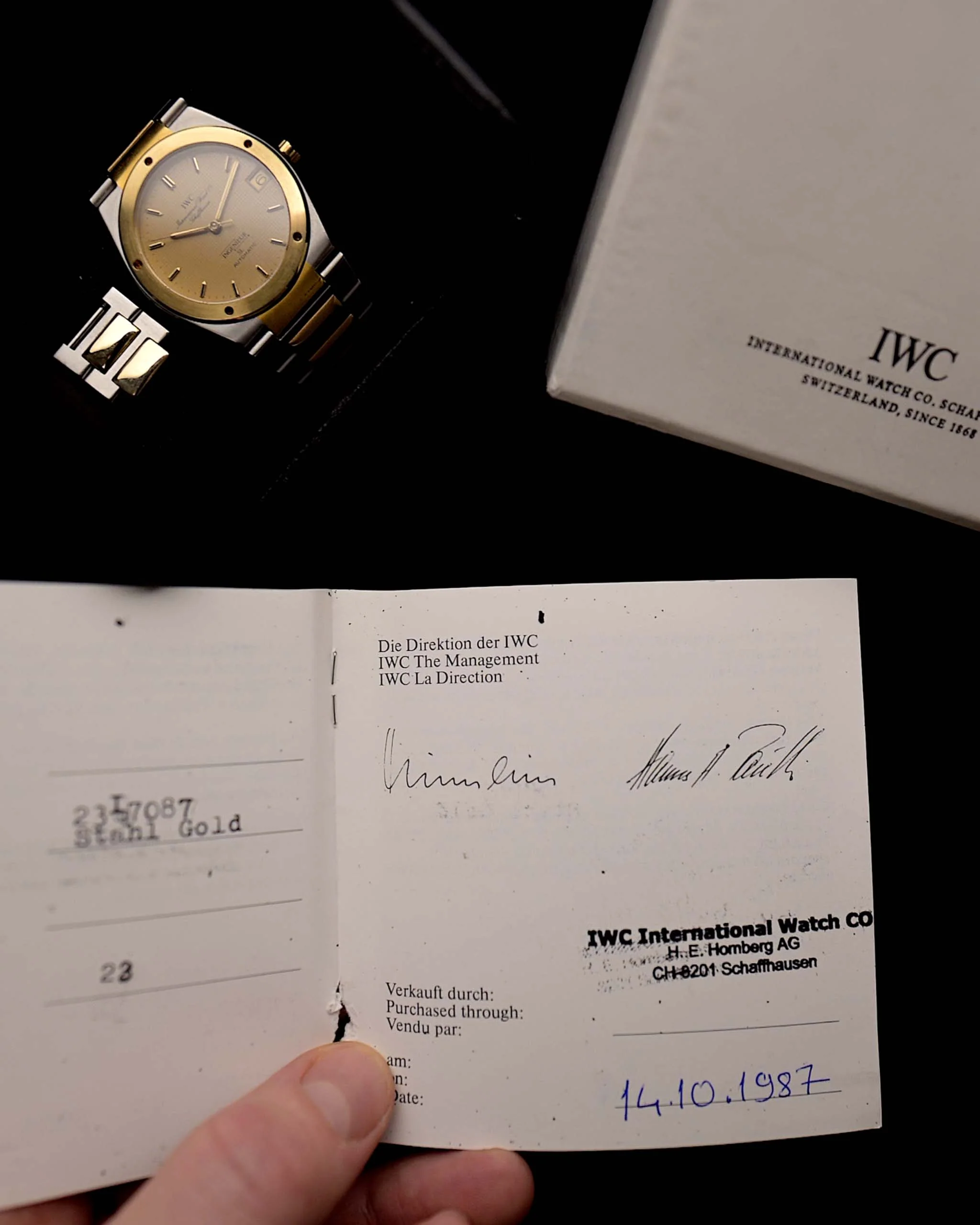 comes with original IWC warranty booklet from first purchase in 1987