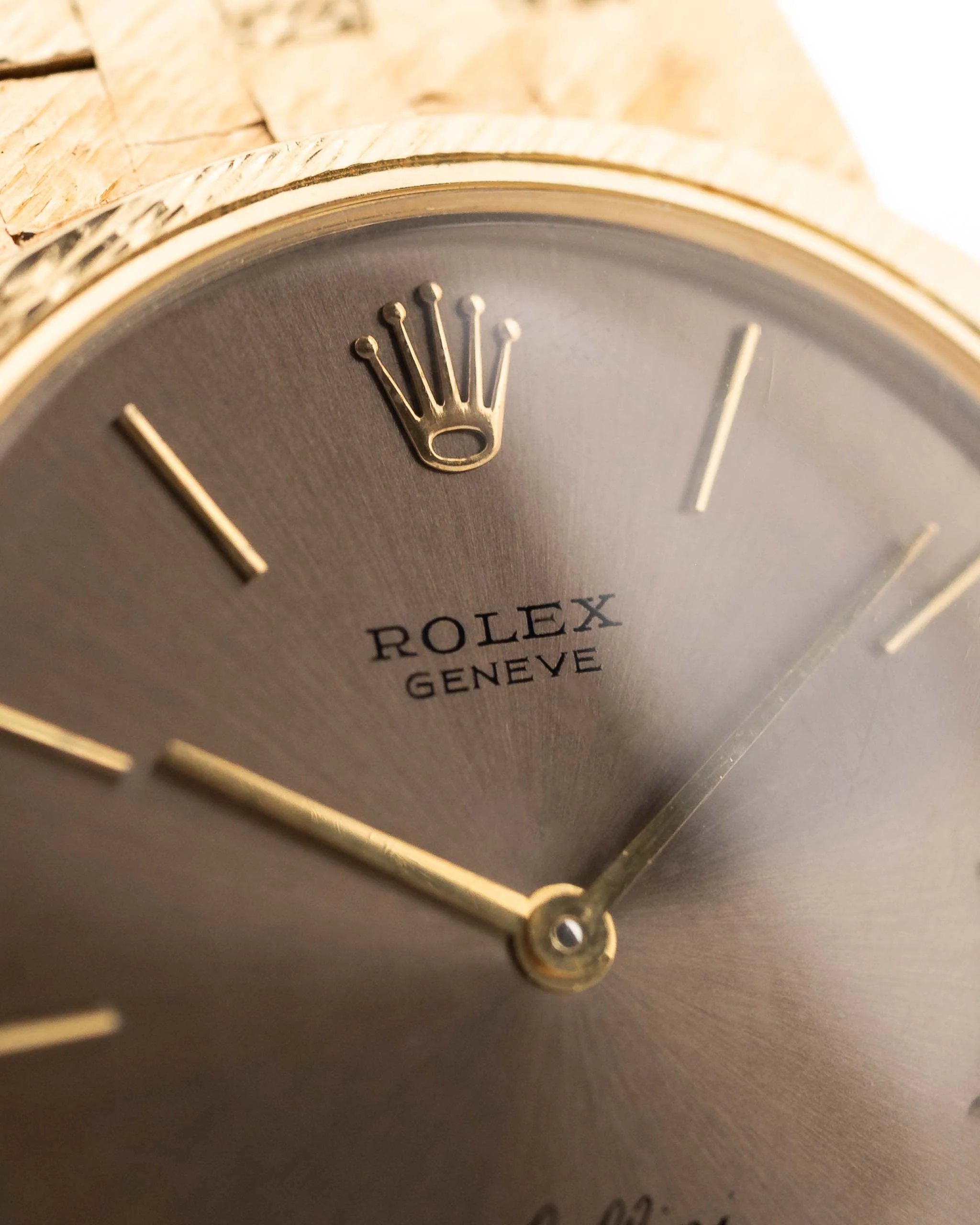This model comes with a very unique grey/brownish colored sunburst dial and in stunning overall condition. Additionally the bark finished bracelet and bezel, make this Rolex a true piece of art.