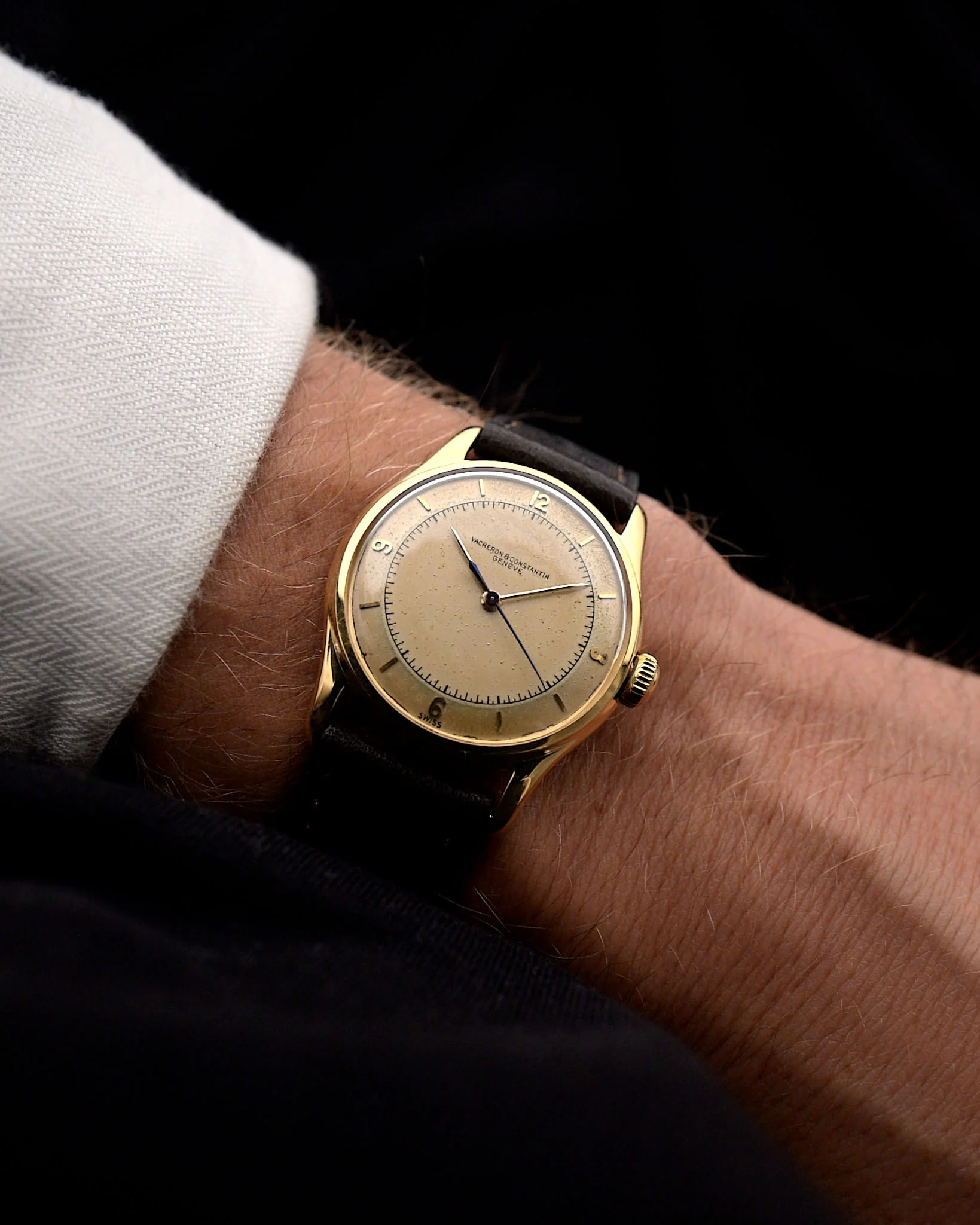 Here we have a beautiful example of a time only, 32 mm 18k yellow gold Vacheron Constantin with Spillmann case from the 1940s.