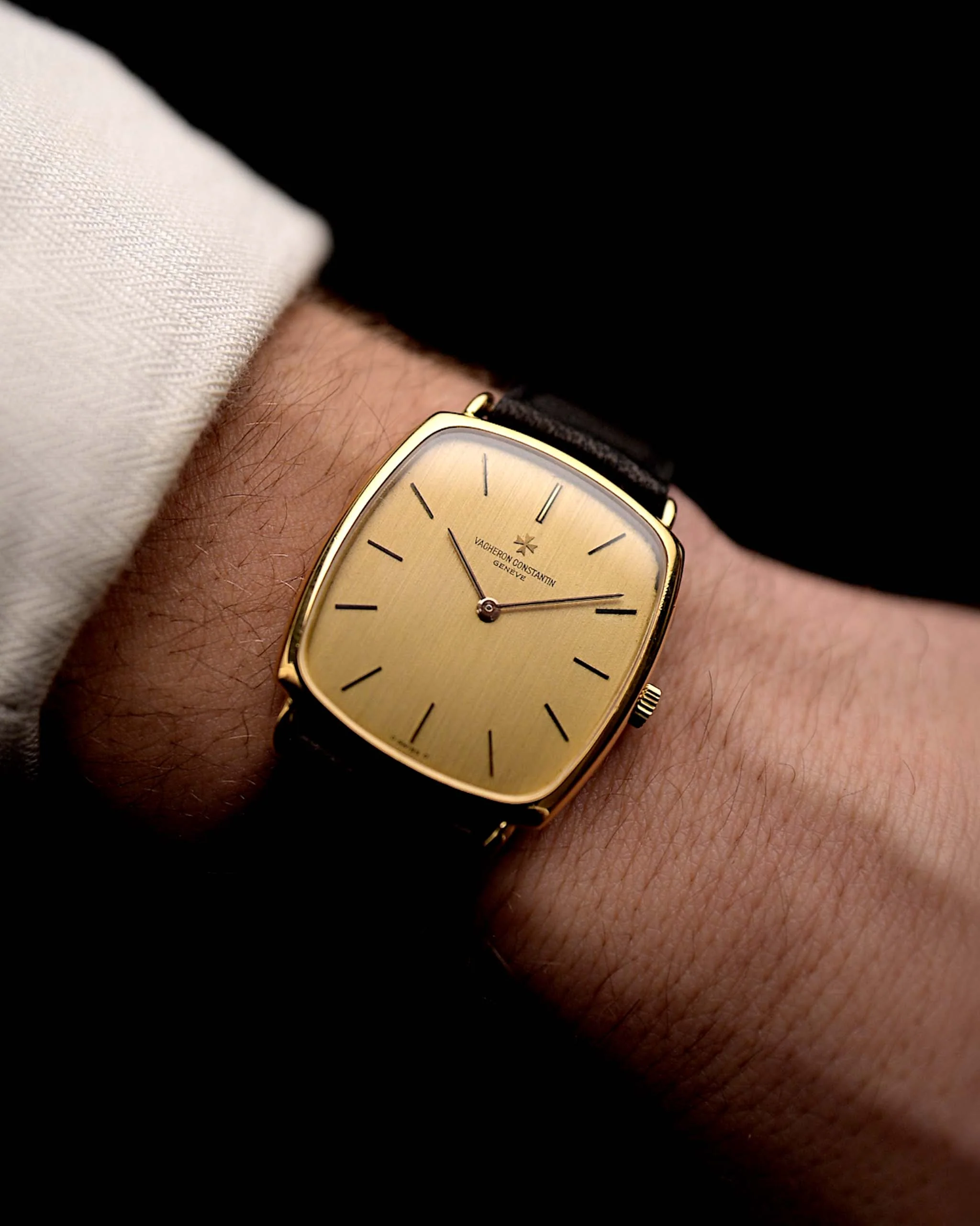 Here we have a beautifully finished 18k yellow gold Vacheron Constantin dress watch in an rectangular design from the 1970s.