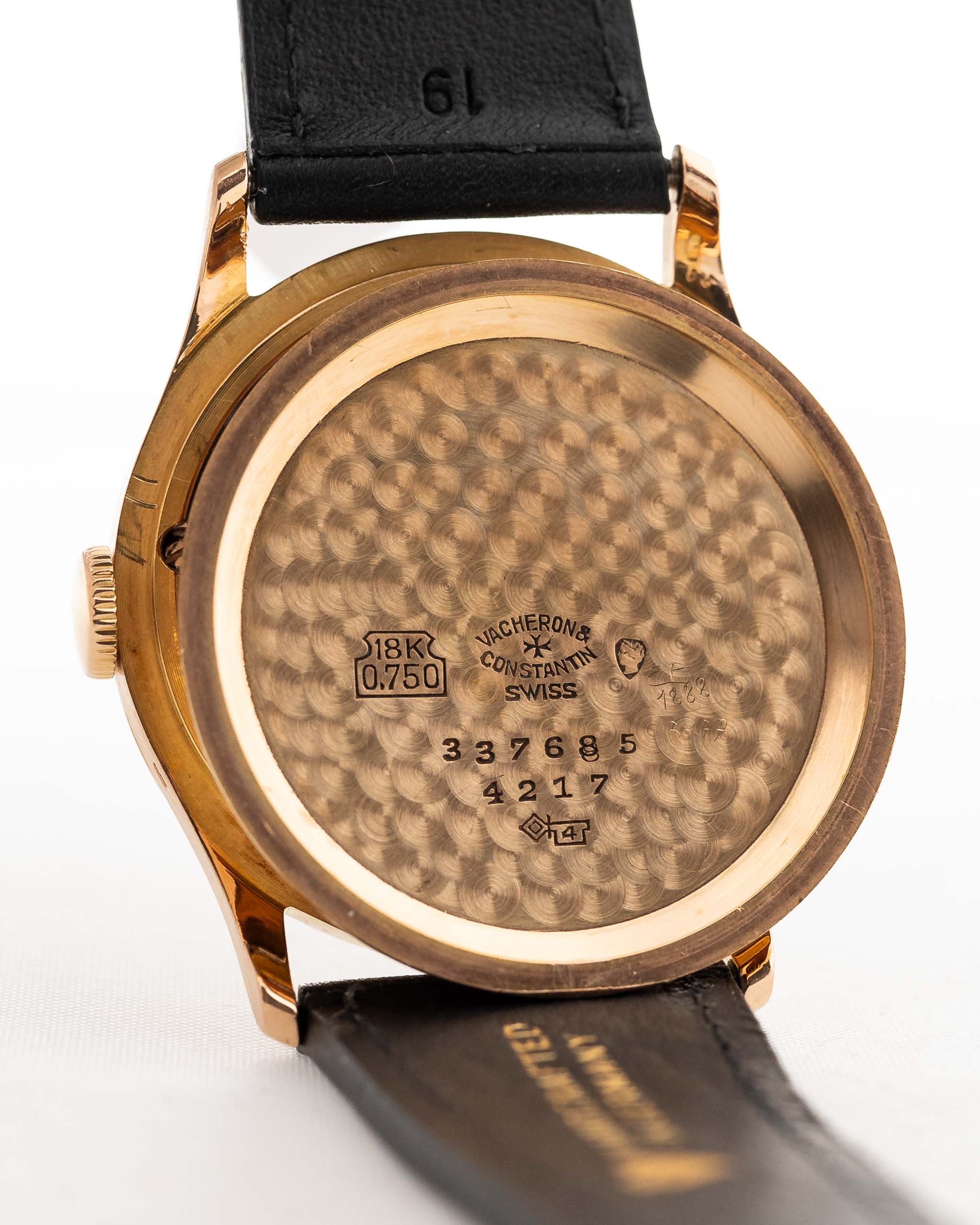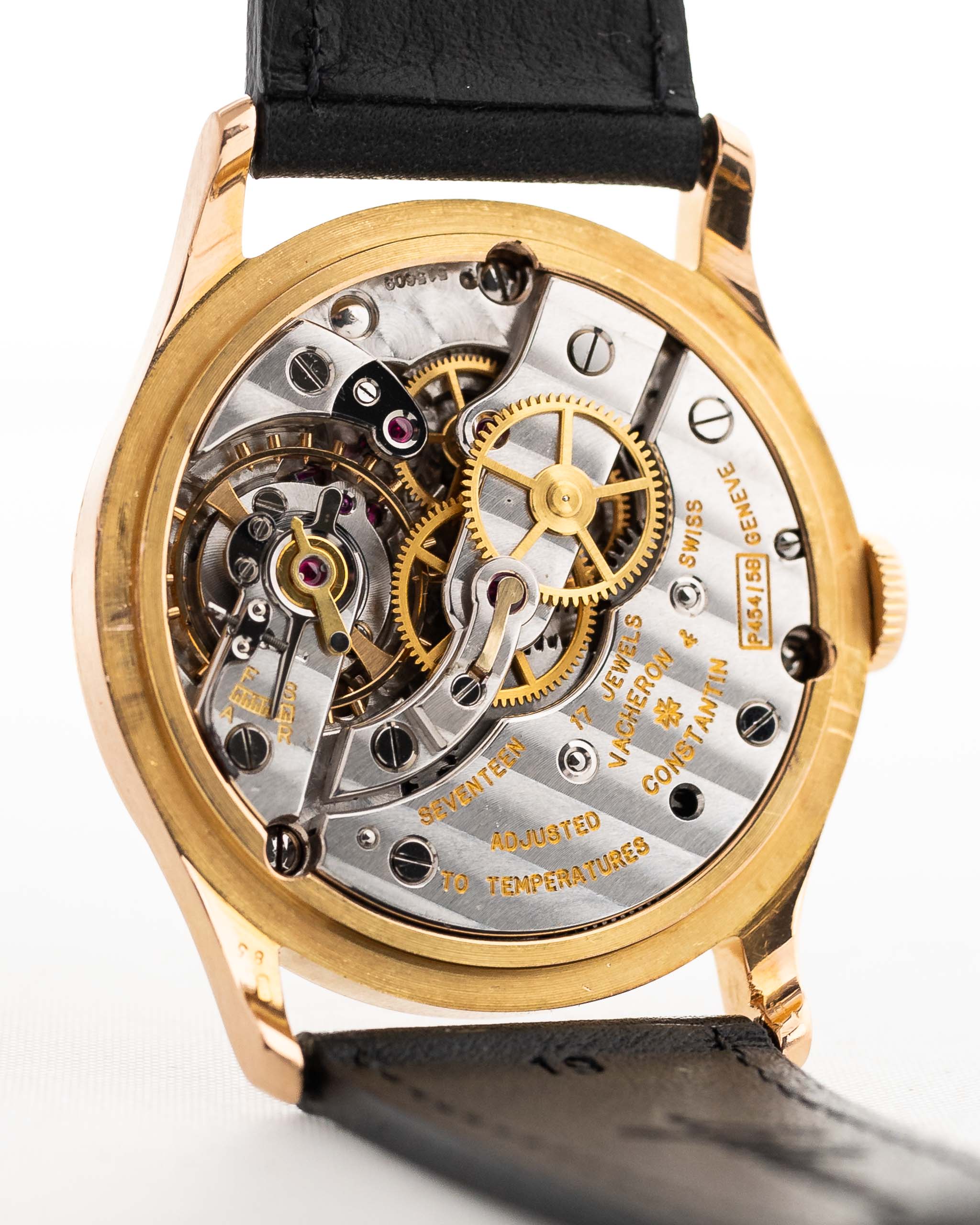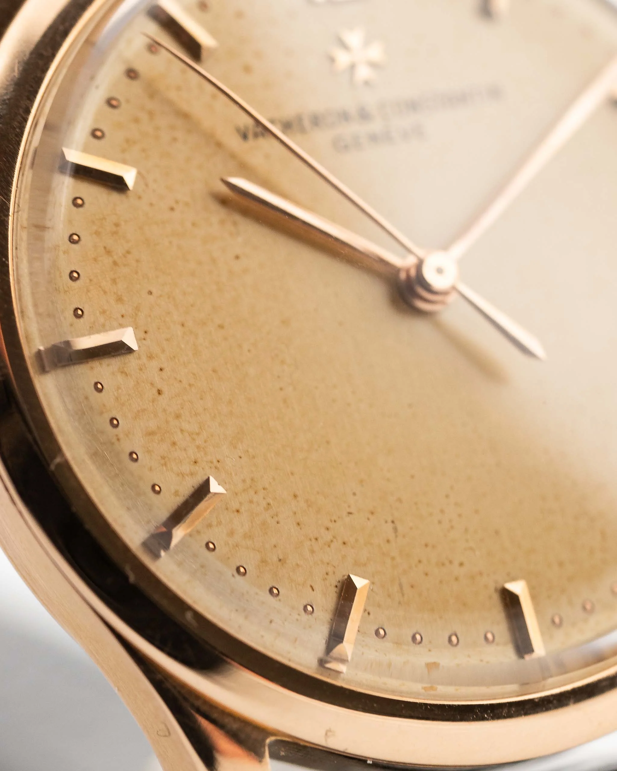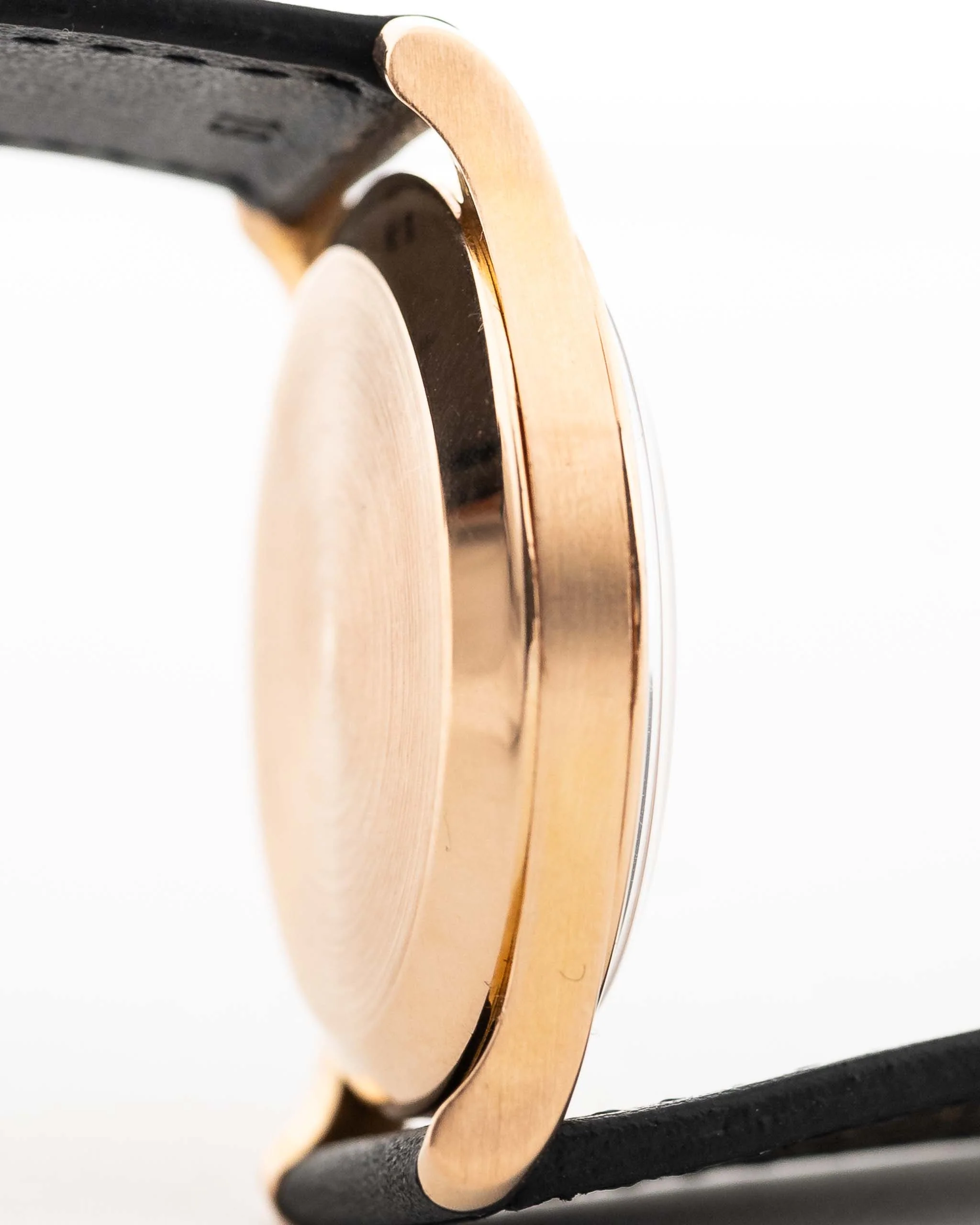 Here we have a beautifully finished very rare Vacheron Constantin dress watch from the 1950s with stunning 18k rose gold Antoine Gerlach SA case and an elegant champagne dial with major twelve layout.
