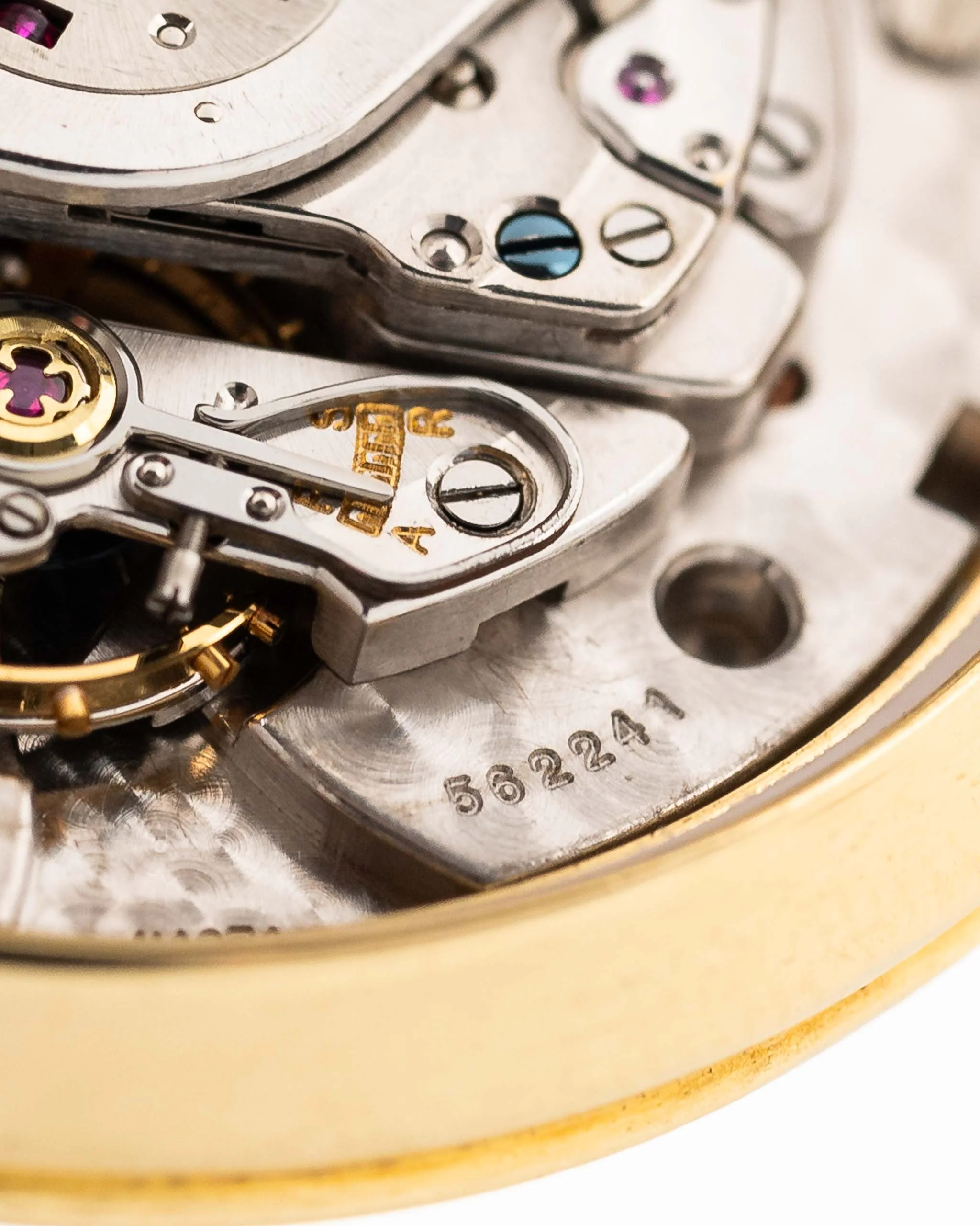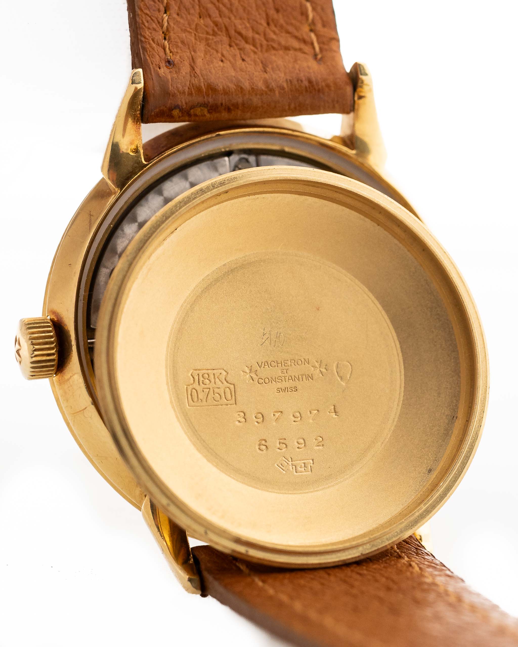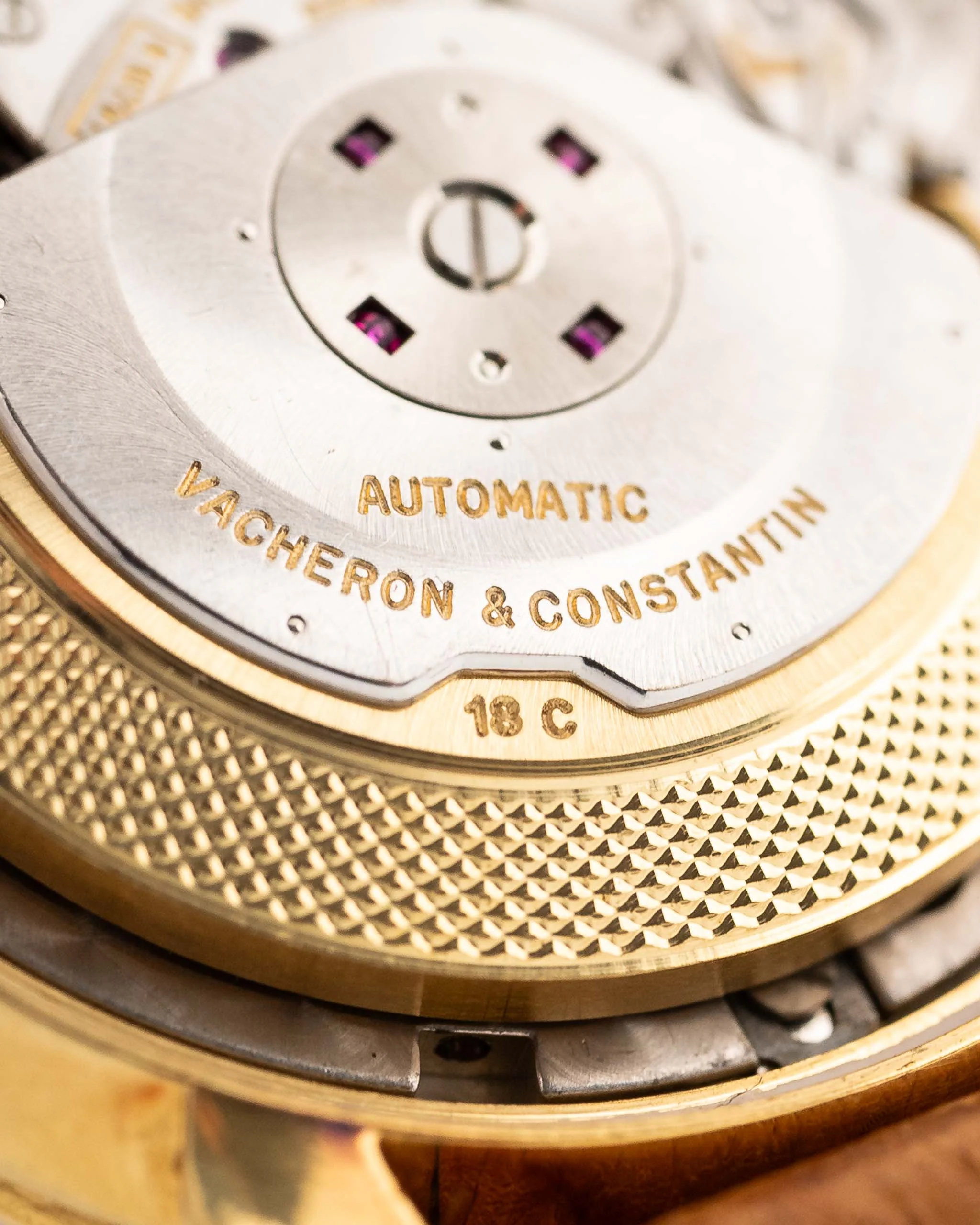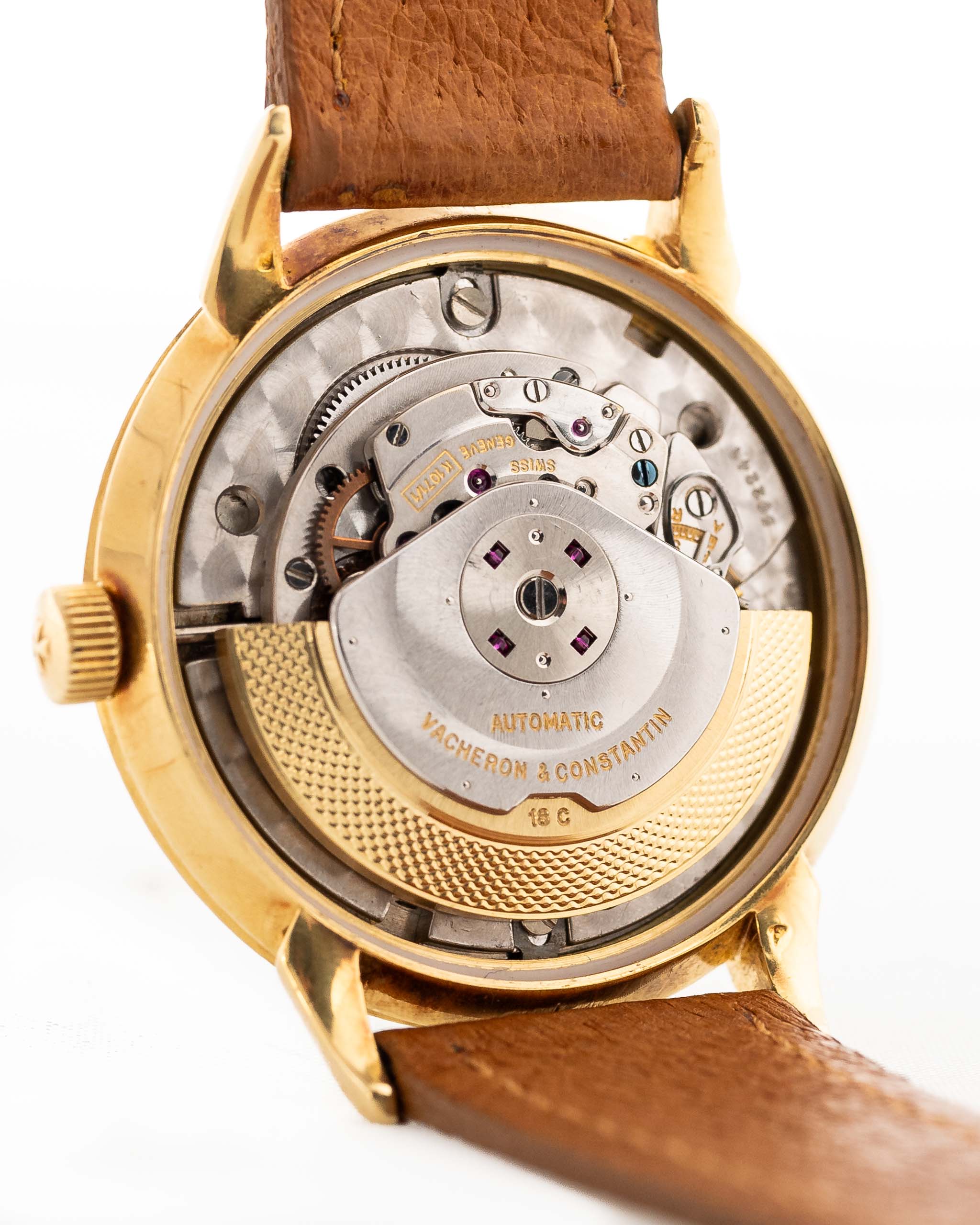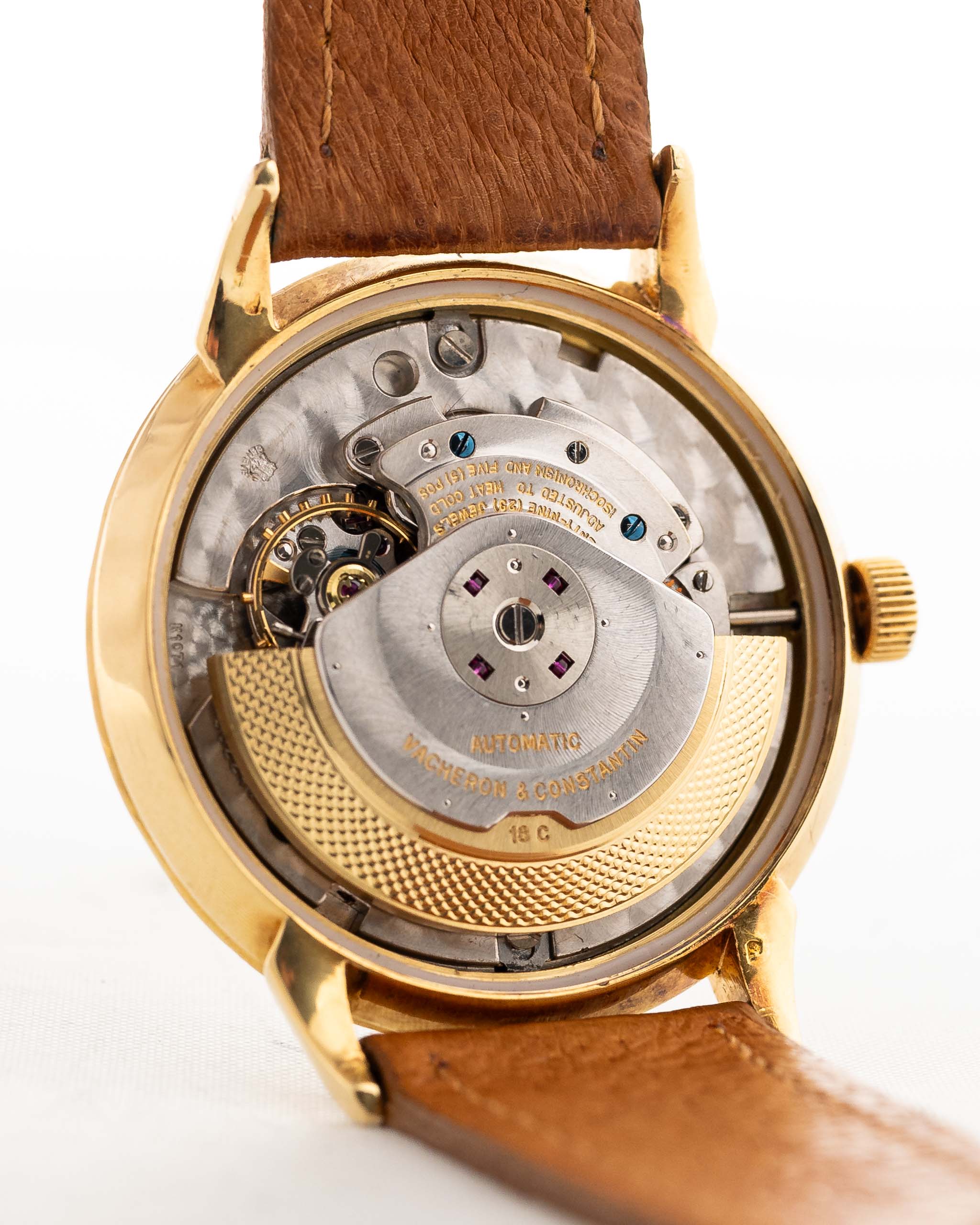 The case is in very good condition and the screw back case has a rounded shape similar to a bubble back including an incredibly finished Vacheron Cal. K1071/1 with a 18k yellow gold rotor..